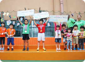 年間を通じてさまざま體験ができるよう、季節に応じた行事やイベントが充実しています。Performance(発表會)、遠足、Sports Day(運動會)、Halloween、Christmasなどの年間行事や、Spring School、Summer School、Winter Schoolなどの短期集中プログラムも行なわれています。